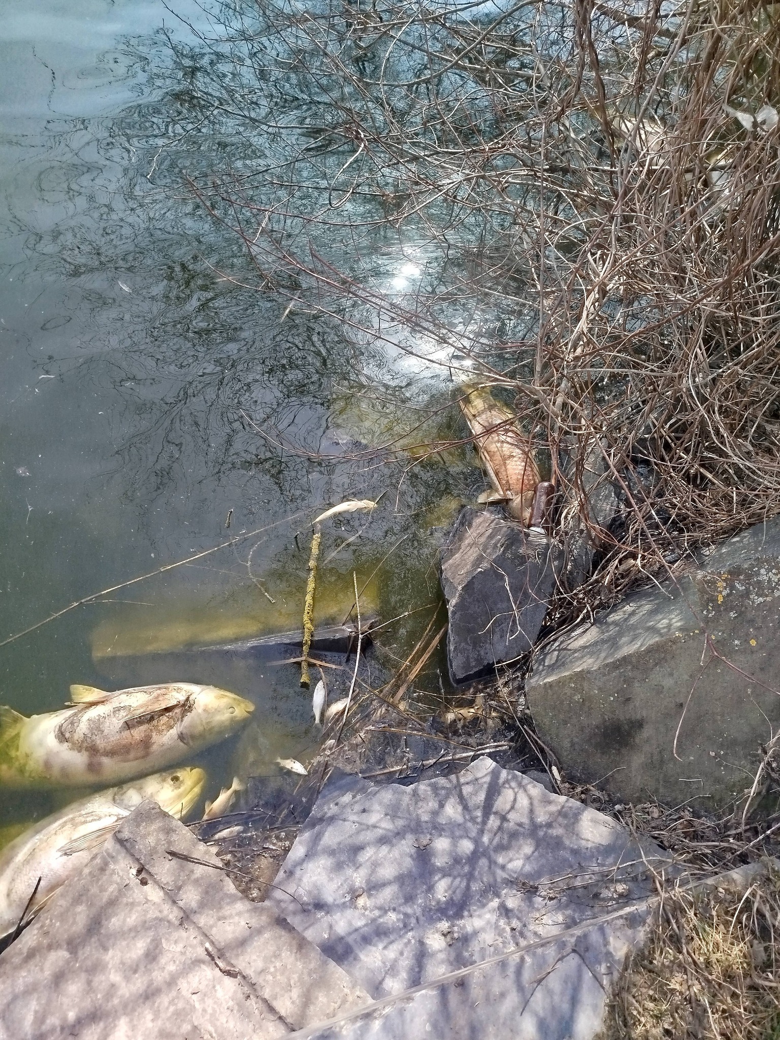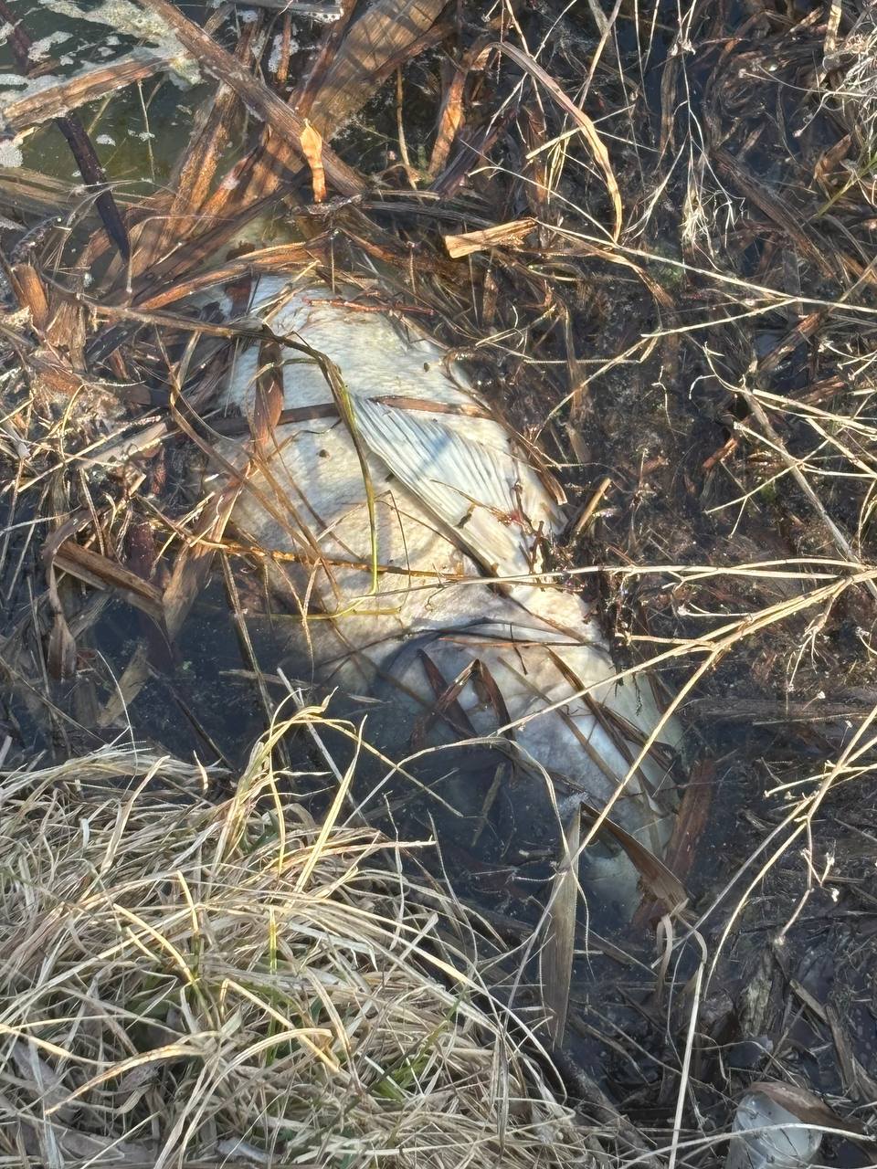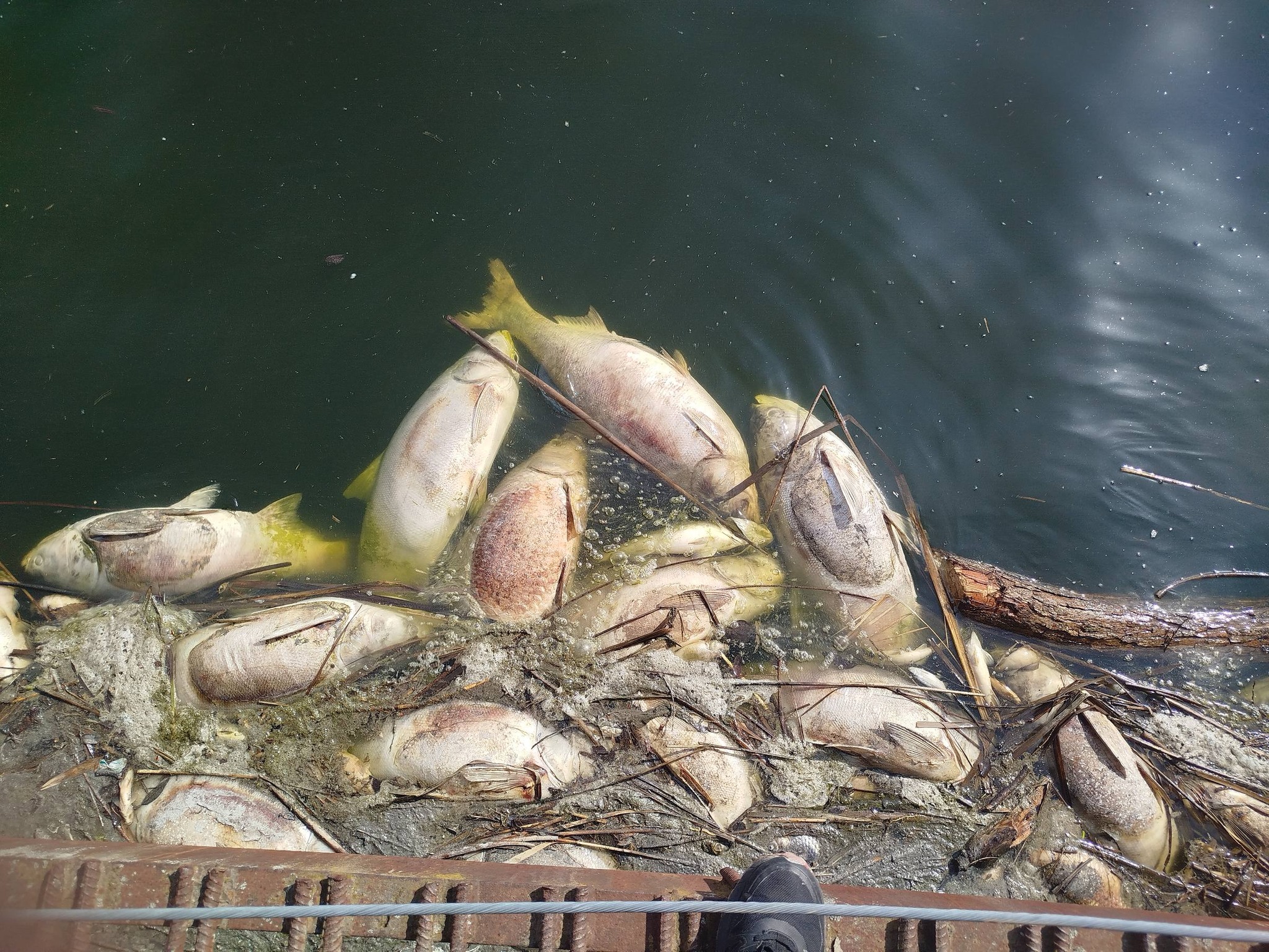 Під час обстеження берегової лінії та водного плеса поверхневої водойми на річці Очеретянка в межах селища Черняхів було виявлено значну кількість загиблої риби. Зокрема, зареєстровано: