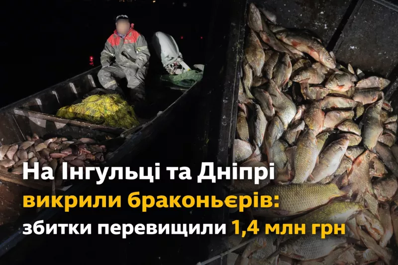 На водоймах України правоохоронці викрили два факти незаконного вилову риби — на річках Інгулець та Дніпро. Загальна сума збитків довкіллю перевищила 1,4 мільйона гривень.