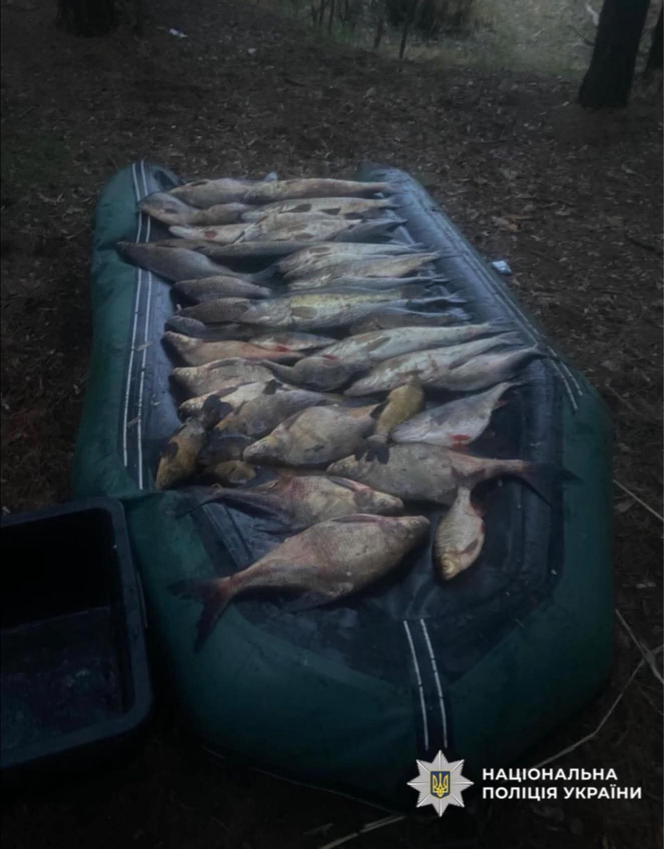 На місці події правоохоронці провели огляд, вилучили незаконний улов і знаряддя лову як речові докази.