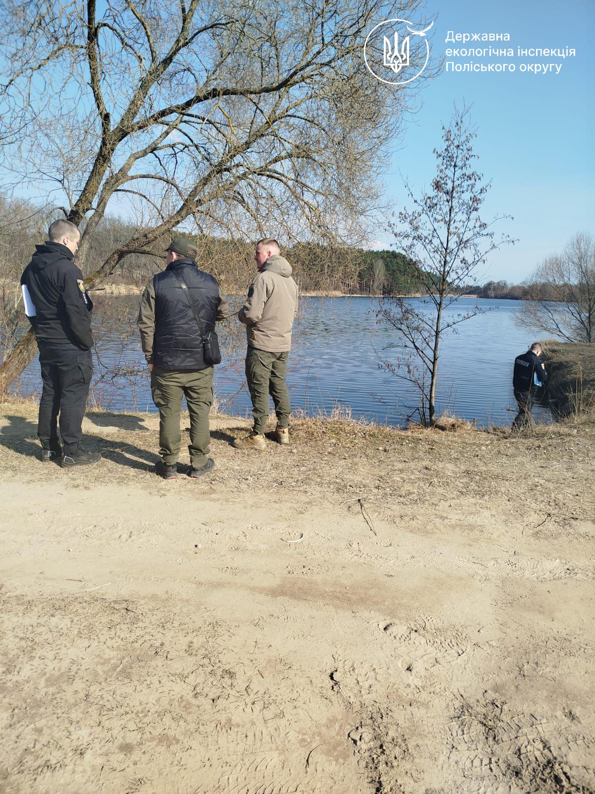 23 березня 2026 року державні інспектори з охорони навколишнього природного середовища Поліського округу оперативно виїхали на місце після повідомлень у соцмережах. До обстеження долучилися фахівці Житомирського рибоохоронного патруля, представники місцевої влади та правоохоронці.