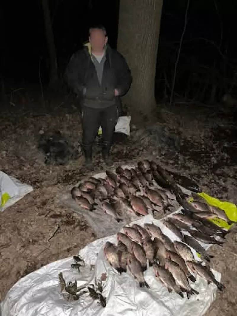 У незаконному уловів виявилися 56 карасів сріблястих, 5 лящів, 2 щуки, 1 сазан, 2 окуні, 1 плітка та 10 раків. Загальна вага здобичі склала 30 кілограмів, а збитки, завдані водним біоресурсам, оцінено у 148 631 гривню.