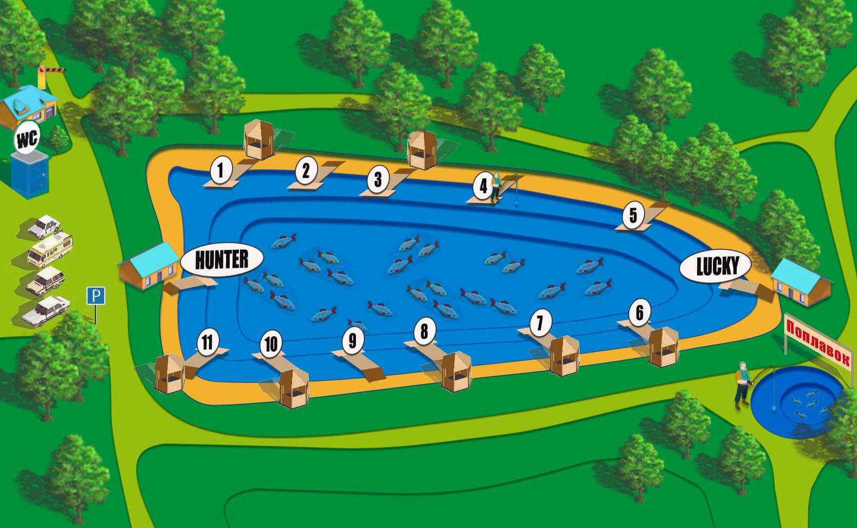 ✔ Велика площа водойми — зручні точки для риболовлі.